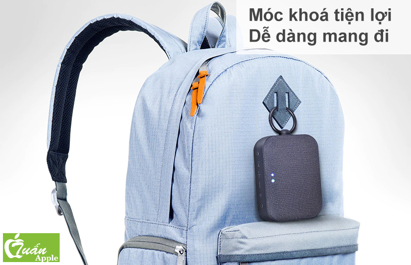 Trên loa còn được LG bổ sung thêm một móc khóa cứng giúp bạn có thể gắn vào balo hay túi xách của mình một cách an toàn, trọng lượng siêu nhẹ 280g giúp bạn mang theo để tận hưởng âm nhạc mọi lúc mọi nơi.